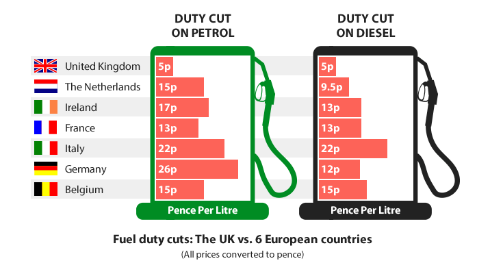 Other countries have made fuel duty cuts up to five times bigger than the UK government, so the UK appears to be trailing far behind.”